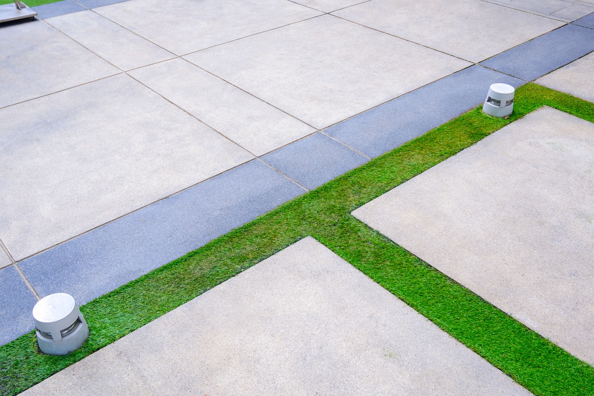 Before we look at a combined installation, let’s look at artificial turf vs concrete pavers: