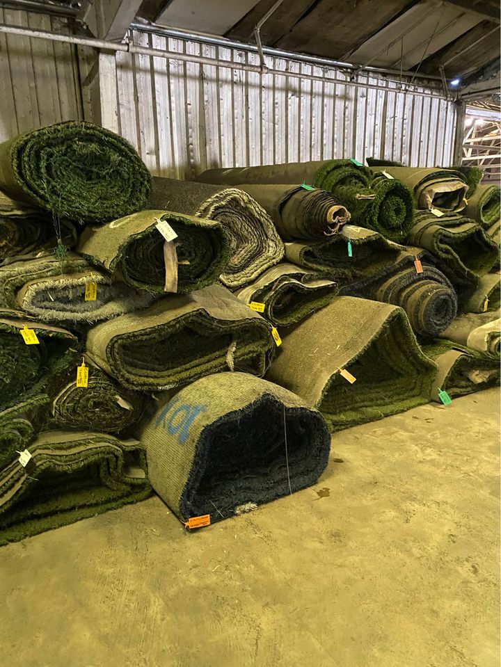 We will take cash or card but WE WILL NOT HOLD ANY MATERIAL. Please bring proper equipment to haul off your items. Some pieces of artificial turf are as long as 15’ and will weigh about 1 lb/sq.ft.